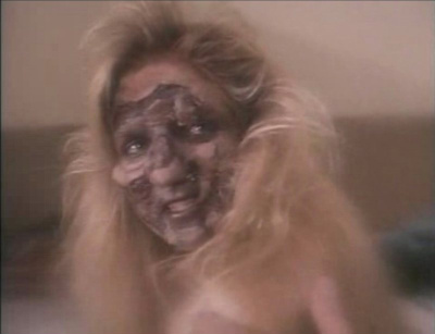 Okay, there were some good folks in Slaughterhouse Rock. For instance, the gratuitous nudity comes from the surprisingly good Hope Marie Carlton (Slumber Party Massacre III) who plays Krista, Richard’s girlfriend (and demonic rape victim). Tom Reilly is acceptable as Richard, Alex’s doomed brother and makes for a creepy baddie once he’s possessed. Donna Denton (who should have done more horror movies) is the right kind of cheesy as Carolyn, the supernatural enthusiast and cloak-wearer.